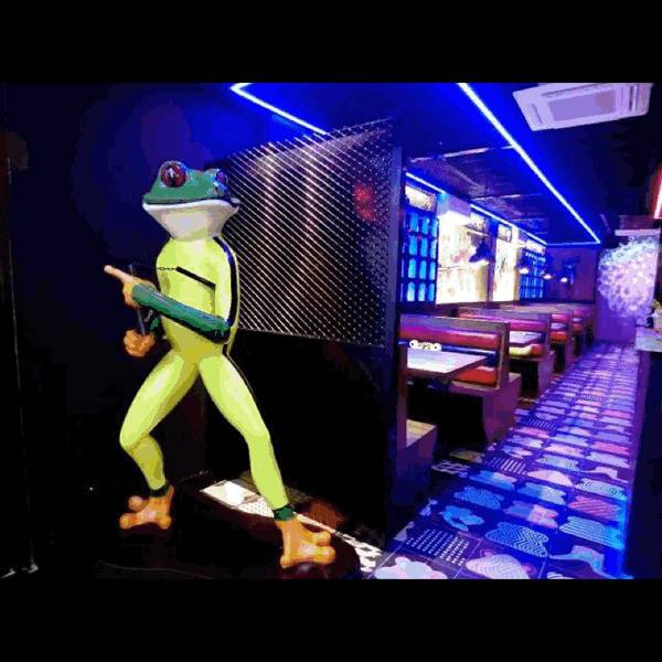 2016年,首家"夜店风"炭烧牛蛙主题餐厅登陆新加坡。幽暗的夜店风搭配霓虹灯管、搞怪可爱的青蛙摆件以及精心绘制的墙绘,瞬间引爆蛙圈。