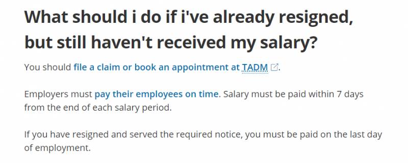 而MOM也有明文规定雇主应该如何支付辞职员工工资: