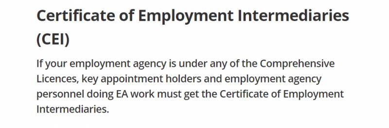 据悉,在新加坡法律中,收取中介费用等职业介绍工作需要许可证。如果上文中的雇主公司没有持有CEI(就业中介证书),显然不可以收取中介费用。