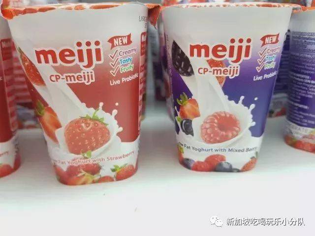 作为新加坡第一大酸奶品牌,Meiji在货柜上的位置也绝对是独当一面。也是最常见的“打折酸奶”,吃起来一般,里面虽然有大颗果粒,但略微觉得添加剂加工出来的。不过这个价格,性价比还是很高了。