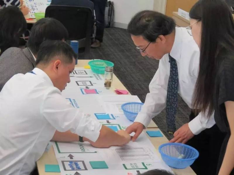 全方位管理课程传统保留项目——啤酒游戏,黄幸亮教授(右)指导学员完成
