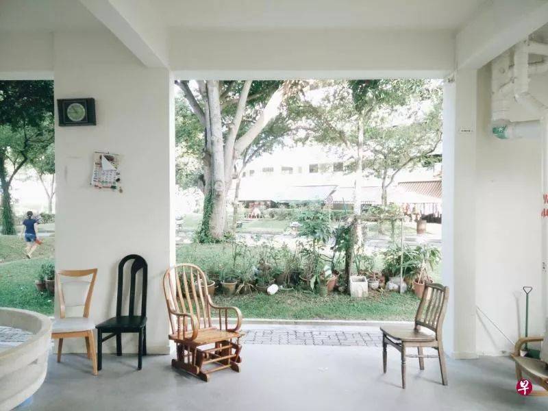 各式椅子为组屋底层增添温馨居家氛围。(受访者提供)