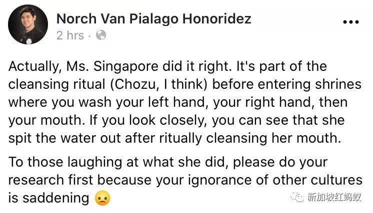 狮城美姐参拜日本神社时按规矩漱口,却遭菲国网民嘲笑“没脑”