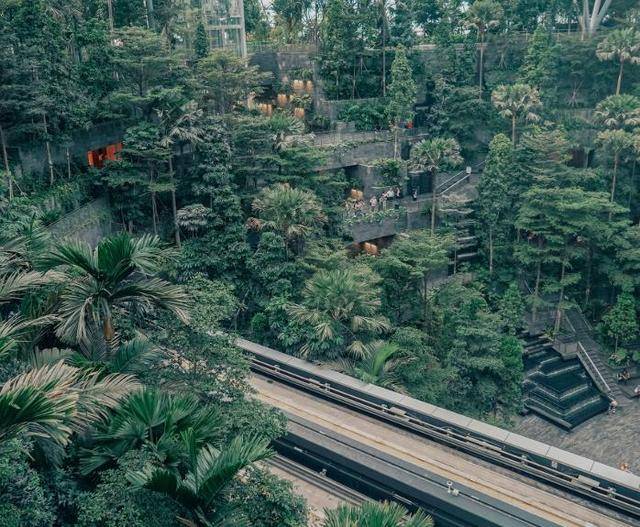 而在这里进行暂时停歇的时候,游客们也一点都不会感觉到无聊单调,因为在这个机场可以尽情的浏览星耀樟宜景区的美景,周边到处都是栽种的绿色植物,统计下来差不多有2000多颗树木,还有10万多株灌木,差不多都是来自于不同的国家,因为有它们的存在,所以机场内部的空气特别好。
