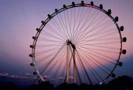 摩天观景轮:新加坡摩天轮的高度为165米,相等于42层楼,是亚洲目前最高的摩天轮。28个安装了空调的座舱可以分别容纳28名乘客,也可以包厢独自与情侣享用摩天轮的丰盛餐点。旋转一周约用30分钟时间,不仅能够360°鸟瞰新加坡的城市景观,还可以远眺直到约45公里外的景色。