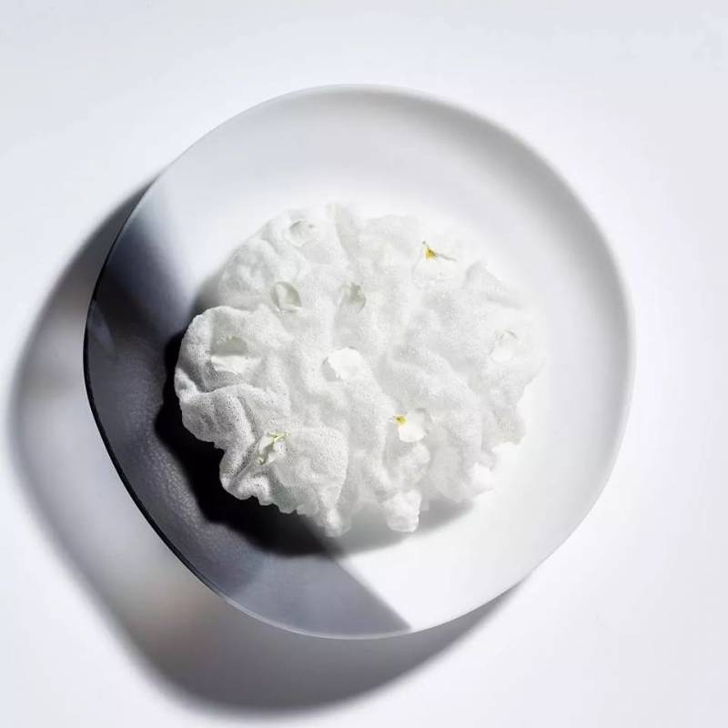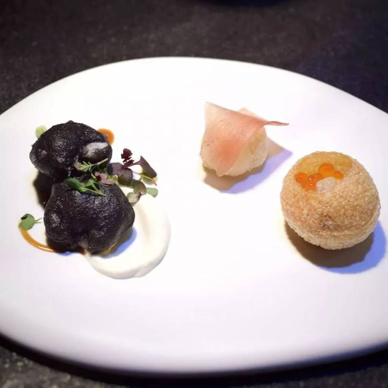 这的一道招牌菜是烟熏鹅肝,充分体现了主厨的烹饪理念,着眼于最简单的食材,制作成独特的风味,质地甚至温度。他使用通三种亚洲蘑菇(Enoki,Shimeji和Shiitake),通过特殊的烹制方法,将它们呈现为奶白色的冰淇淋状。