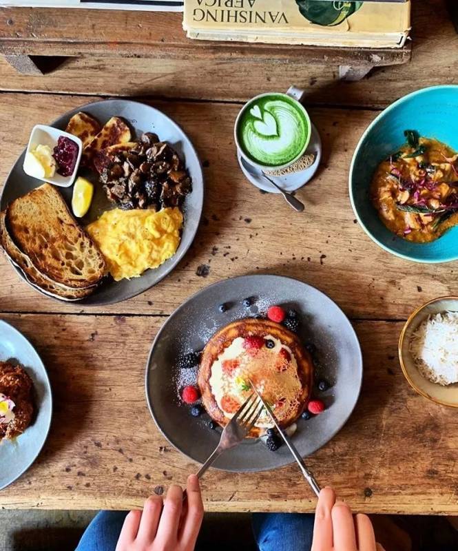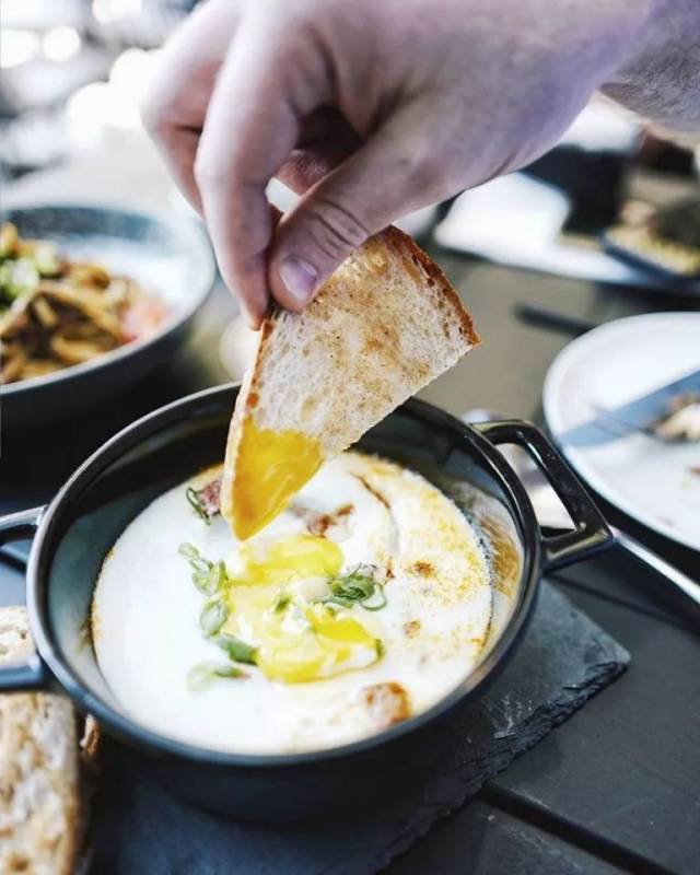 这里还提供早午餐,Babi Assam,烤鸡蛋看起来像是shushuka,一个铁锅里卧著两颗未熟的鸡蛋,浸泡在浓郁的酱汁中。同时还配有吐司面包一起食用。还有一道典型的娘惹菜,Ayam Buah Keluak Ricebowl,看起来像是如今流行的grain bowl,一碗红烧鸡米饭搭配溏心蛋。