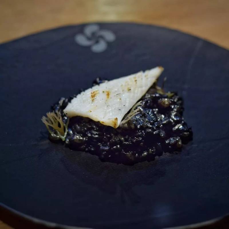 这里的招牌必点,Arroz de Txipis(乌贼墨饭)尽情探索属于巴斯克的风味。乌贼是巴斯克当地美食的关键,炭烤鱿鱼,配之以上Kabayaki(蒲烧酱)和黑芝麻蒜泥酱给这道菜赋予了亚洲风味。