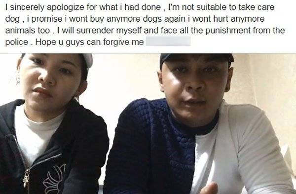 他在首则贴文中强调,他对所做的事情表达歉意,他自认不适合照顾狗,并保证不会再买狗,也不会伤害动物了。