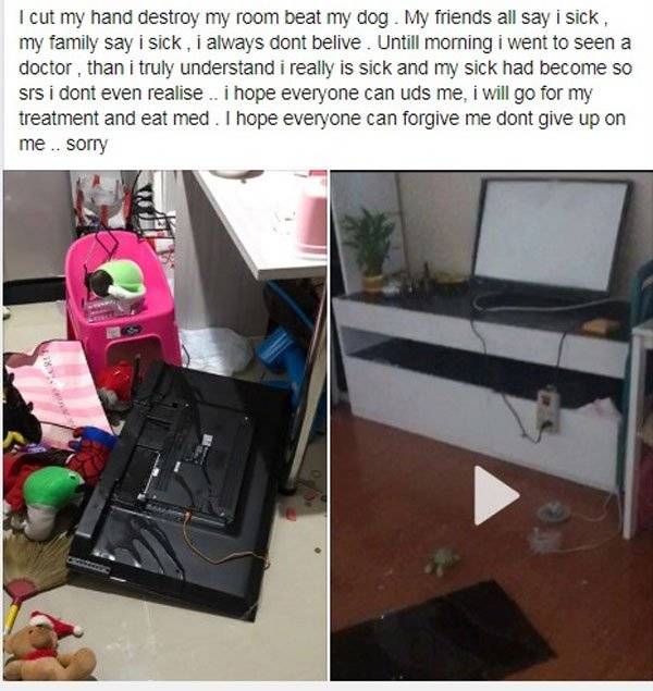 山姆也在另一则贴文中表明,他割伤了手,虐打爱犬,而他的朋友都说他生病了,家人说他生病了,但他总是不相信。