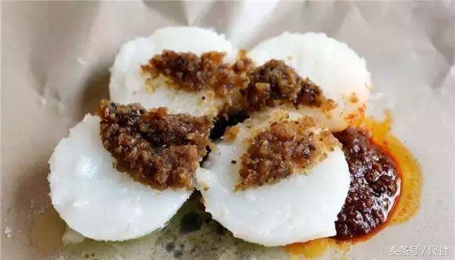 水粿是将米浆倒入摆好的小茶杯里,然后再放到锅炉上蒸熟,熟之后待冷却,取出蒸熟的米浆就会呈碗状。