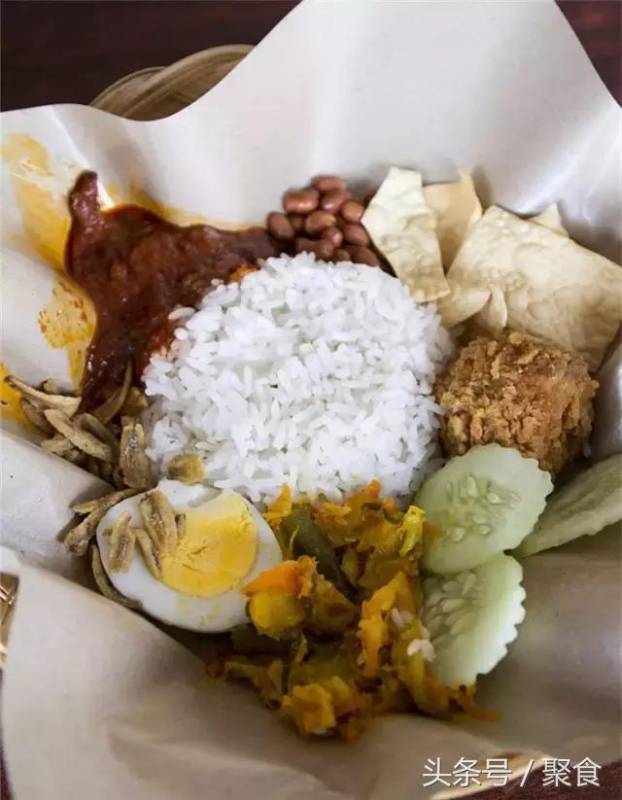 传统的马来式椰浆饭会加入江鱼仔、坚果、炸鱼、黄瓜,还可以加入一个鸡蛋;而另一种则是中式做法,里面的丰富配菜包括炸鸡腿、咖喱蔬菜等。