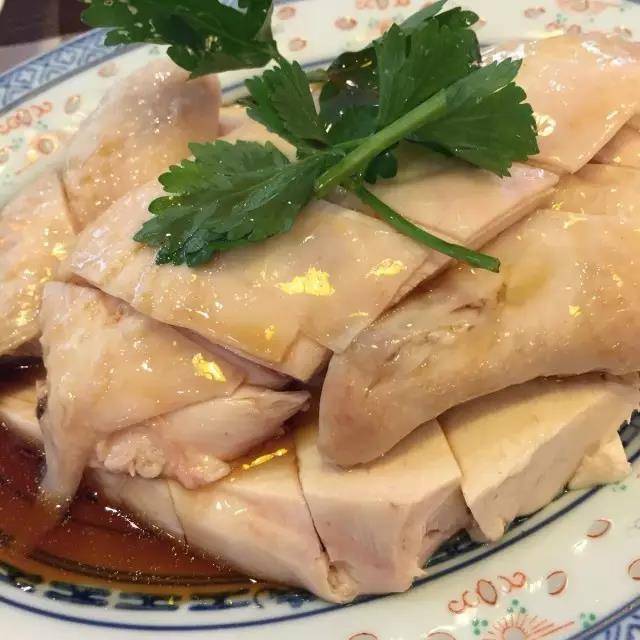 新加坡的“国菜”海南鸡饭, 鸡肉用沸水煮或热烫至全熟,然后浸入冰水保持肉质滑嫩。米饭,以鸡高汤、姜和香兰叶烹煮,且需油量适中。