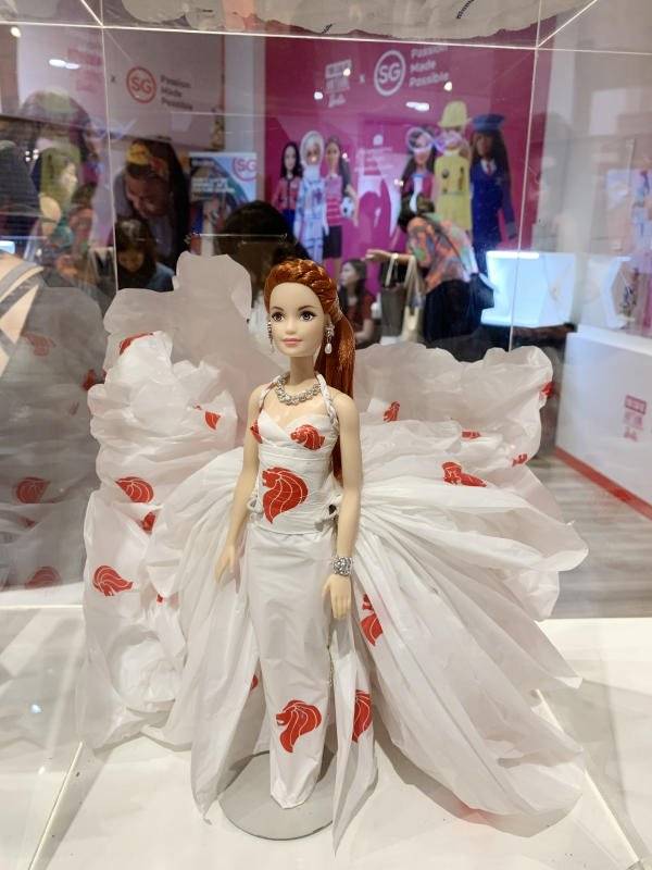 新加坡芭比娃娃收藏家杨建(39岁)与新加坡旅游局合作,利用新加坡人最常见的元素,设计出具有本地特色的芭比娃娃时装。除了小贩中心的打包棕色牛皮纸,他还用新加坡常见的祝君早安毛巾和印有红色狮头的白色塑料袋等材料,给芭比设计漂亮的裙装。