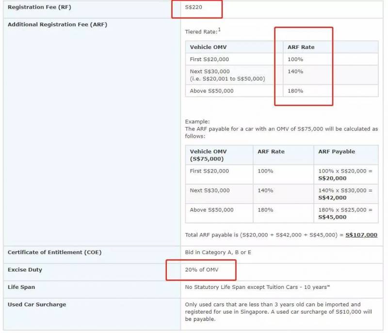 车价=车来到新加坡的成本价+车辆的税(注册费+附加注册费+Excise Duty+COE)加关税的7%+车牌费+保险+车行利润