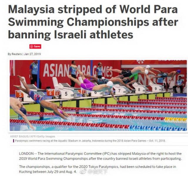 本年度世界残障游泳赛是2020年东京残障奥运会的入选赛之一,但马来西亚赛事组委会禁止以色列运动员入境参赛。马来西亚首相马哈蒂尔早前强调,马来西亚不会举办任何涉及犹太国家的体育赛事。