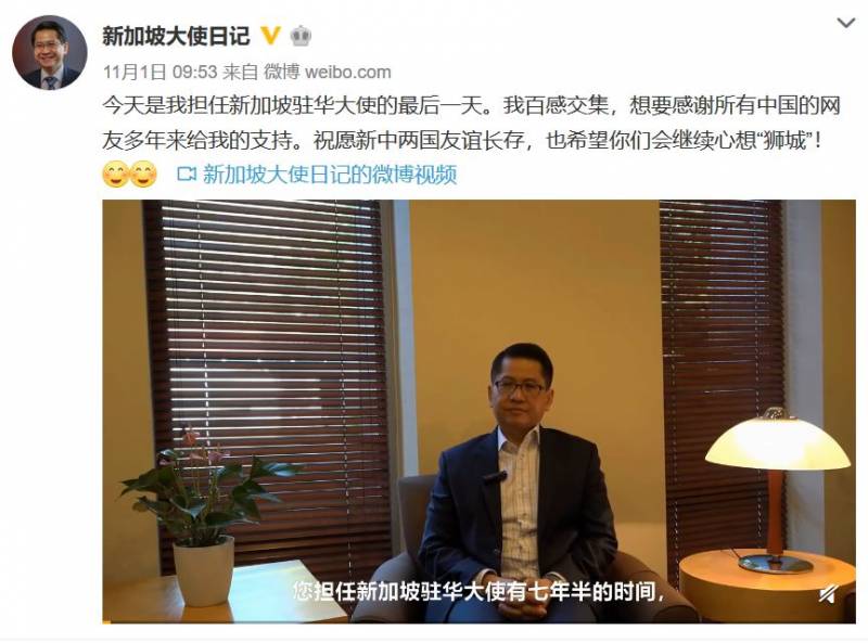 “今天,是我担任新加坡驻华大使的最后一天...”