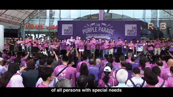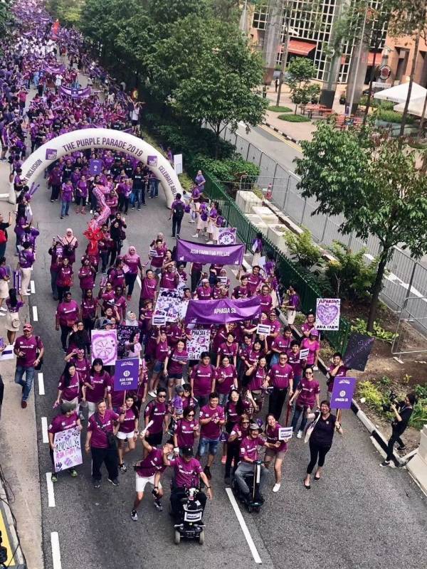 (11月2日),超过万人身穿紫色衣服聚集在新加坡新达城参加紫色行动“Purple Parade”。