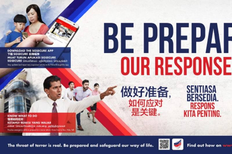 国务资政兼国家安全统筹部长张志贤昨天在榜鹅水滨坊举行的SGSecure路演上,为新措施主持推介仪式。