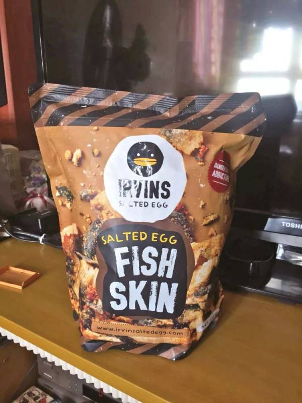 知道咸蛋鱼皮的人,一定知道“IRVINS”这个拥有独营店铺的牌子,黑黄色的包装及装潢都十分醒目。鱼皮酥脆,薯片咸蛋味较浓,重口味者一定会爱上,不过可惜的是通常很快就会售罄。