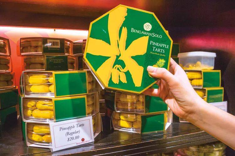 外表酥脆松软,开盒就充满浓重的牛油香,内馅主要是清甜的菠萝蓉,类似于台湾的凤梨酥,这是新加坡人家中常备的一款糕点,带回来作伴手礼是再合适不过了。