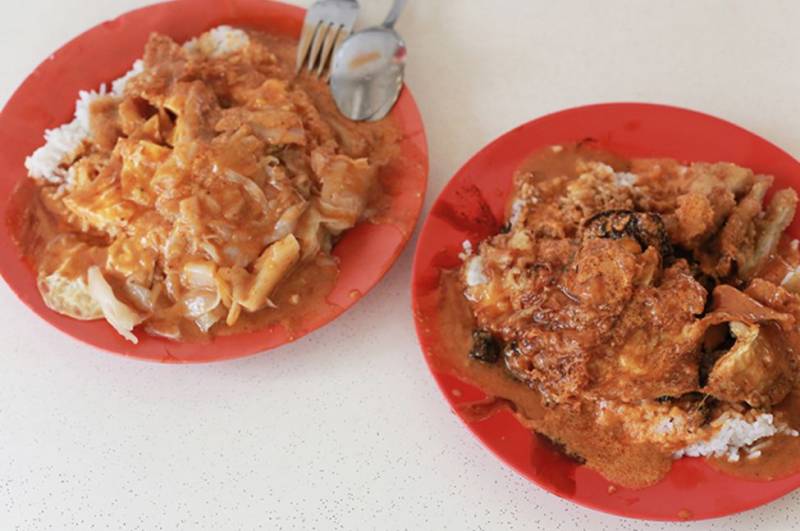 一盘简单的米饭和油炸的食材,再将粘稠可口椰味很浓的咖喱酱与特制酱油倒在上面,所有食物粘合在一起,入口超级美味