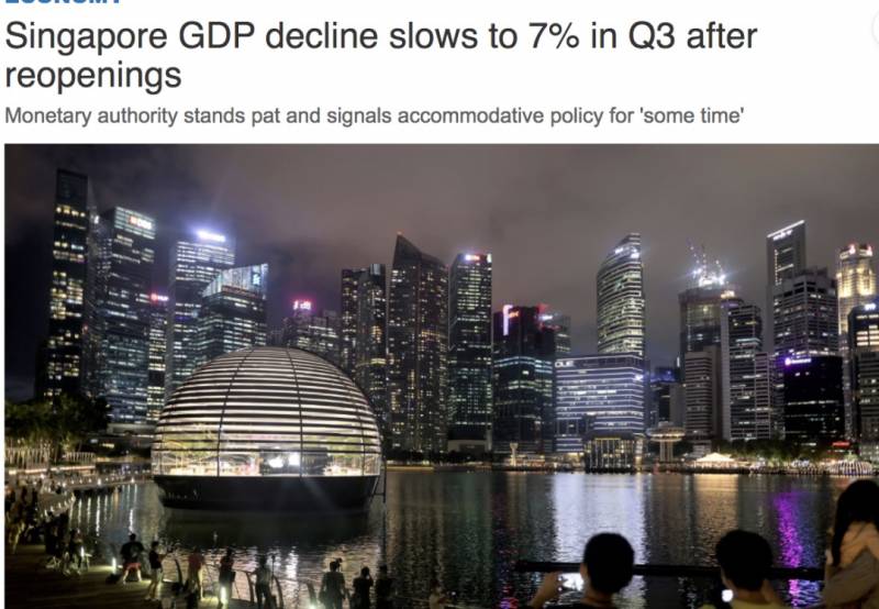 周三上午出炉的第三季度速报GDP数据显示,新加坡经济已经走出了有史以来最严重的衰退低谷,7月至9月期间,经季节性调整后的国内生产总值按季回升7.9% 按年计算,第三季度经济萎缩7%,低于第二季度13.3%的萎缩幅度。