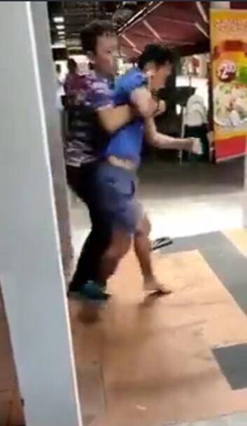 大叔不顾一切将男子制服,并在另一名大叔的协助下,将男子牢牢抓住...