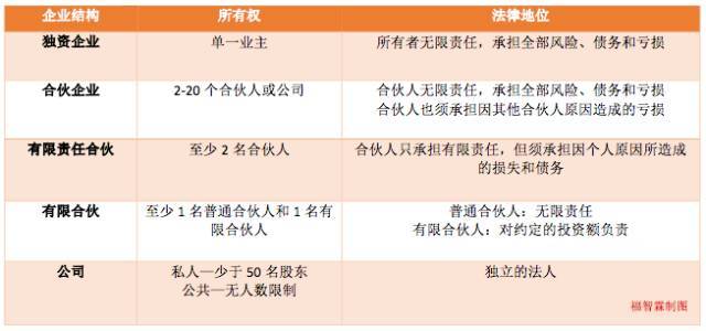 从下图中,我们可以看到企业结构相对应的所有权以及法律地位。