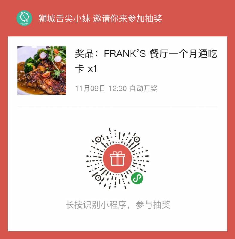 *活动最终解释权归FRANK'S WESTERN KITCHEN和舌尖上的狮城所有