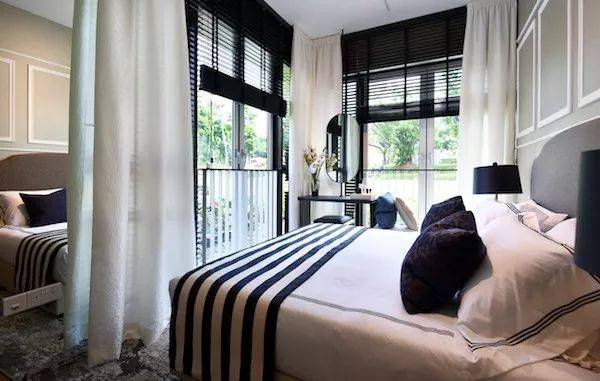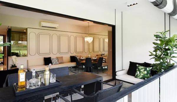 The Verandah Residences采用了这种设计,并赋予它现代化的弯曲造型。受传统房屋的启发,该项目有屋檐和壁架,以阻挡直接照射的阳光和雨水。窗户的墙壁被用来重现保持室内自然通风和凉爽的效果。百叶窗的设计是为了保护室内不受阳光和雨水的影响,同时仍然允许自然气流对室内进行交叉通风。标志性的黑白洋房阳台也通过独特的“朱丽叶阳台”融入到该项目设计中。