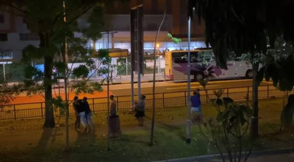 一位名为Tim Tim的前日(1日)网民在面子书页面COMPLAINT SINGAPORE上分享两段时长分别为19秒及13秒的视频,画面中可见起初二人是站在电梯口前紧握拳头,对峙数秒后突然动起手来。