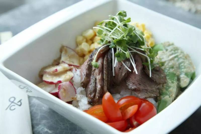 这个是小妹见到的最健康的牛肉碗! 里面有甜玉米、萝卜、糖豌豆、圣女果、豆芽、鳄梨、芝菇和山葵芽,还有几片牛肉排骨。