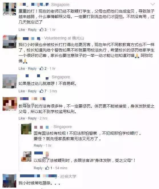 新加坡的政府学校也有藤条教育,辣妈粉丝群的妈妈也说学校老师上课拿着藤条规范上课纪律!