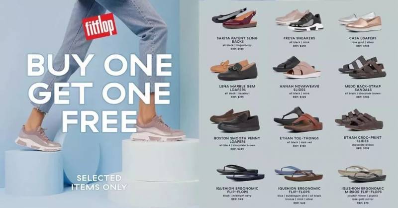 FitFlop买一送一活动来啦:即日起至11月28日,FitFlop20多款热门运动鞋和凉鞋享受买一送一优惠,可在实体店Wisma, VivoCity, IMM & Waterway Point等购买,最低只要$49哦!