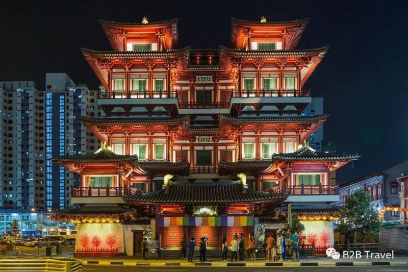 新加坡佛牙寺龙华院建于 2007 年,地处牛车水,虽然建成时间不久,但内饰设计精妙,展示的佛教艺术和历史丰富多彩,生动讲述了数百年前的文化故事。寺庙的名称源自佛教徒心目中佛陀留下的犬齿,人们在佛陀火葬之地印度拘尸那伽城发现此物,并一直供奉展示。