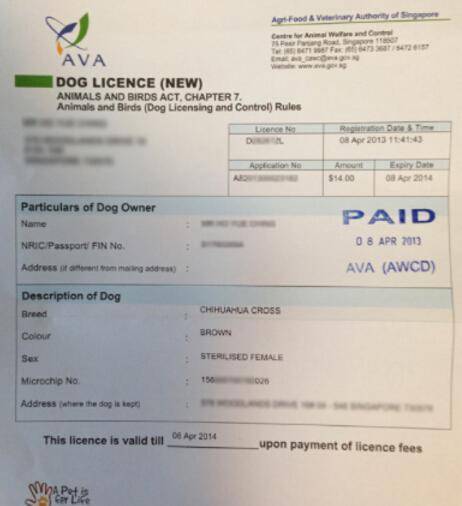如果违反上述规定,农粮兽医局有权扣押犬只,并对狗主处以最高500新元的罚款,或者吊销养狗许可证。