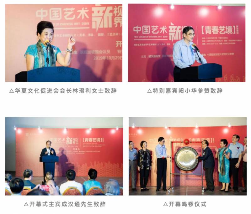开幕式由中华世纪坛艺术馆策划总监,当代馆副馆长高敬女士主持。中国美术馆藏品征集部副主任王雪峰先生,华夏文化促进会会长林璒利女士,特别嘉宾中国驻新加坡大使馆文化参赞阙小华先生,开幕主宾原新加坡国会议员成汉通先生先后致辞。来自新加坡文化界,美术界各会长,教育界,华社,商界,媒体等各领域超过100位代表受邀出席开幕式,作为非画会机构主办的此类展览开幕礼,嘉宾出席阵容堪称空前。