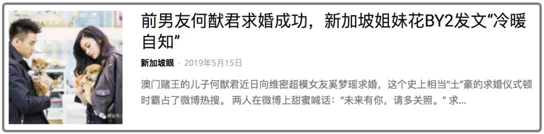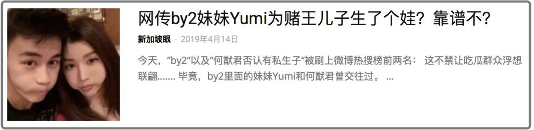而在这之前,微博上还在谣传何猷君的前女友,新加坡姐妹花BY2中的妹妹为他生了个娃……