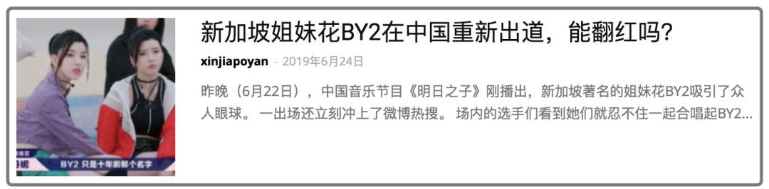新加坡BY2两姐妹在中国参加音乐节目《明日之子》,再次进入了大家的视野。被网友称为“实力派”。