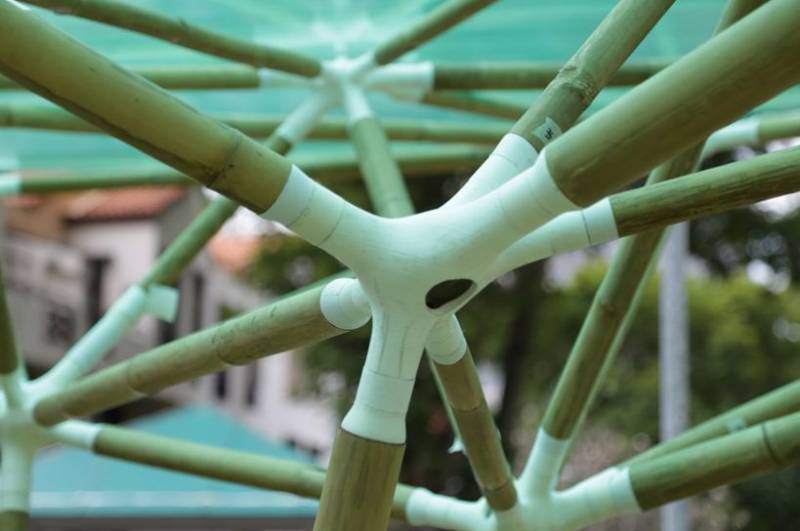 为了确保无缝的美感,每根竹竿都通过自动3D打印的定制连接器来连接