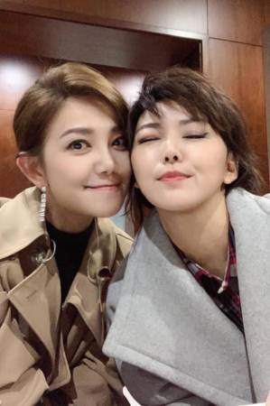 梁静茹(左起)和孙燕姿的合照。看似有着一双大长腿。