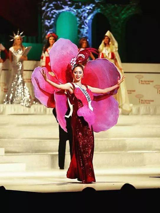 2016年新加坡国际小姐的国服也是以胡姬花为设计。