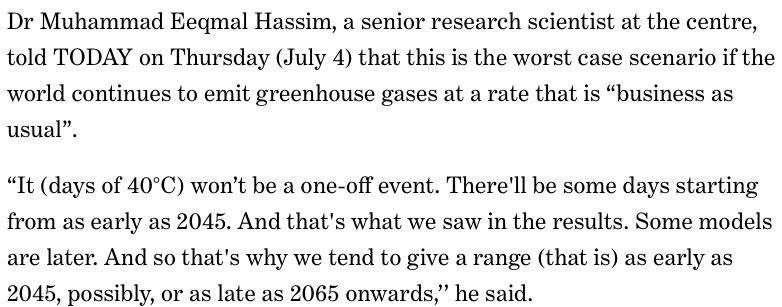 科学家们指出在2045年,新加坡的气温可能达到40°C