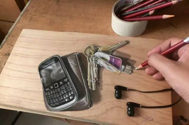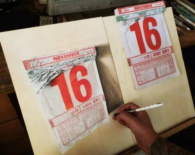 Ivan一直喜欢在木板上创作立体逼真的写实画,以木板之独特给画作带来独特的质感,复杂到一只动物一本日历一瓶倾倒的可乐、“简单”到一滴水,Ivan的作品都可谓已经惟妙惟肖到以假乱真的层次。