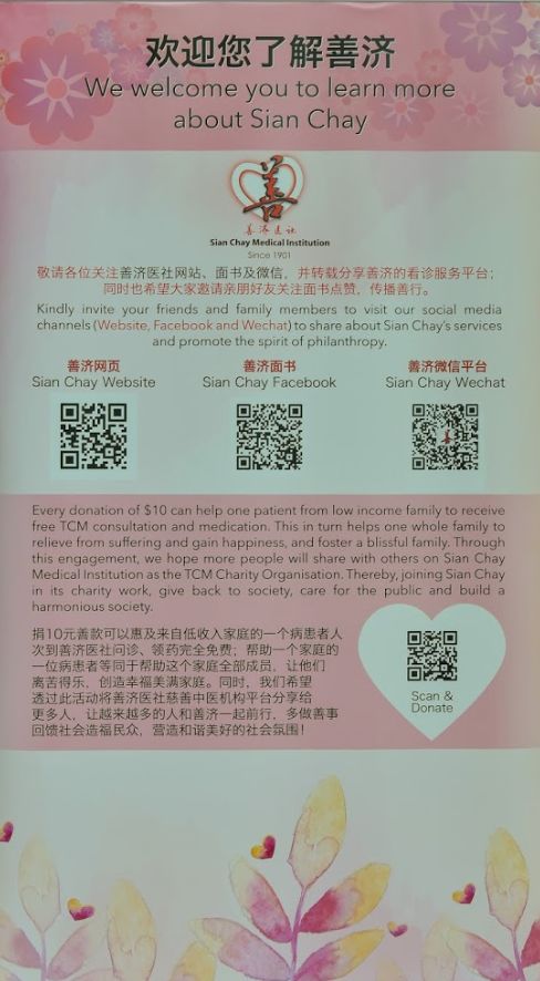 每捐款$10元新币,就可以惠及来自低收入家庭的一个病患者到善济医社问诊、拿药完全免费。