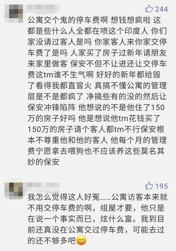 就目前已知信息来看,该屋主的来访朋友是否停车过夜仍旧不得而知。如果确实要收费,而“过夜”是由凌晨12点开始计算的话,保安征收费用似乎也不是不可以理解。不论如何,屋主骂人确实不对,但物业管理方面是否毫无过错,有没有恶意刁难屋主及其朋友还不能下定论。