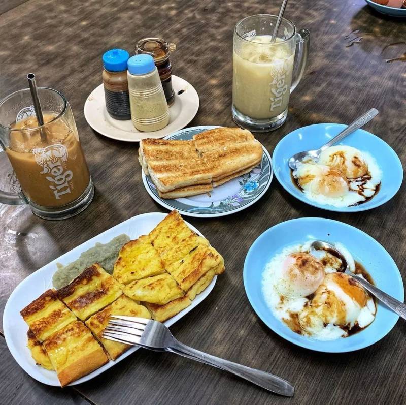 吐司、奶茶、咖啡、半熟鸡蛋