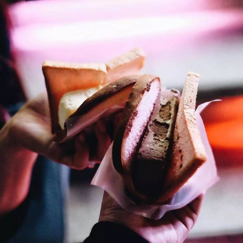 可以选择夹面包或者华夫饼干