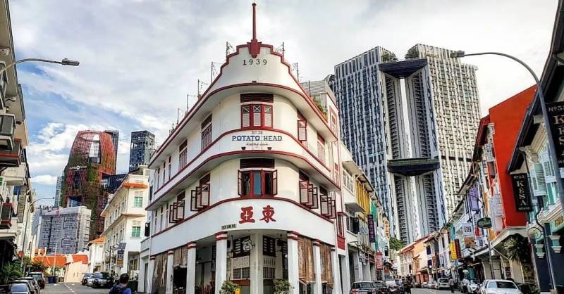 位于牛车水附近的一条复古的骑楼街区